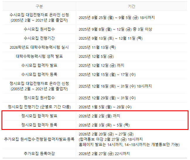 2026 정시합격자발표 일정 정리 추가모집 등록마감