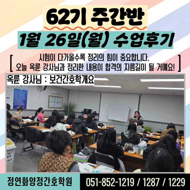 부산간호학원 | 정연화 양정 간호조무사 학원 1월 26일(월) 수업후기|62기·64기·63기, 보건간호와 해부생리로 여는 힘찬 한 주