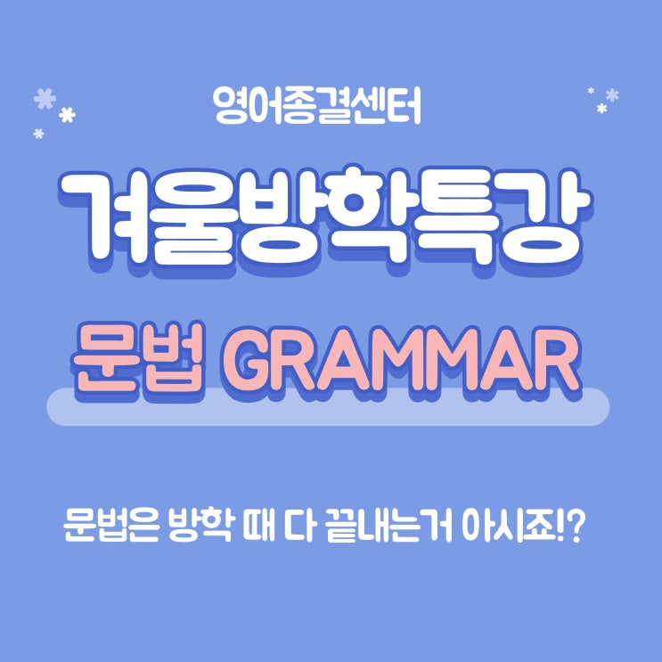 문법, 지금 정리하지 않으면, 영어는 계속 불안할 수밖에 없습니다. 저희가 매 방학마다 특별히 문법 특강만을 고집하는 이유는 정말 영어를 빨리 끝내 드리기 위함입니다. 학원은 계속 다니는데 영어 성적이 불안한 이유는 분명합니다. 제대로 정리를 한 적이 없거나, 회독 수가 부족해서 입니다. 문법은 한 번 배우고 끝나는 과목이 아니라, 제때 구조를 잡아주지 않으면 학년이 올라갈수록 부담이 커지는 영역입니다. 특히 겨울방학은 그동안 누적된 문법의 빈틈을 정리할 수 있는 가장 주요한 시기입니다. 학기 중에는 학교 진도와 시험 준비에 쫓겨 부족한 문법을 다시 돌아볼 여유가 잘 없습니다. 있다 하더라도 뚝뚝 끊겨서 수업이 진행 되....... <img src="https://blogthumb.pstatic.net/MjAyNTEyMjVfMTYx/MDAxNzY2NTk0NTcyMTA2.dJun6_hpefPkhQTnoxNr4Cvq6duKvZP7vUYnnjI1qIcg.50aR5Fy_F2HE0ydOdgPlqI7f5gDRDy0KN9zgLieBo30g.JPEG/001.jpg?type=s3" />