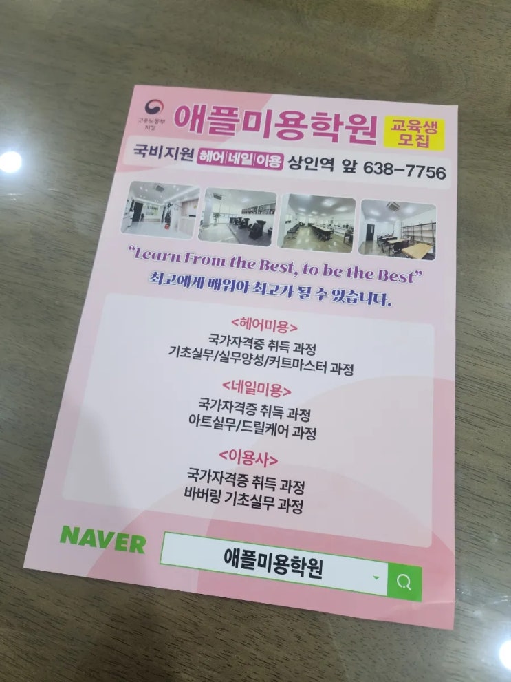 애플미용학원 국비훈련생 모집|헤어·네일·이용사 과정 안내 미용 자격증을 준비 중이신가요? 취업·창업·진로 전환을 고민하신다면 국비지원 미용과정으로 시작해보세요. 애플미용학원에서는 헤어, 네일, 이용사(바버) 국비훈련생을 모집하고 있습니다. 애플미용학원 국비지원 교육과정 ✂️ 헤어미용 국가자격증 취득 과정 기초 실무 / 실무 양성 커트 마스터 과정 네일미용 국가자격증 취득 과정 아트 실무 과정 드릴케어 과정 이용사(바버) 국가자격증 취득 과정 바버링 기초 실무 과정 초보자도 기초부터 차근차근 수강 가능합니다. 국비지원으로 수강 부담 DOWN 미용 학원 수강료가 부담되셨다면 국비지원 제도를 꼭 활용해....... <img src="https://blogthumb.pstatic.net/MjAyNjAxMDVfMTI1/MDAxNzY3NTk3MzY4NTE4.yMXyKeOXM-QhcCI0sT-GPvDoB82rR4IbIJquP-WCjLAg.BGppGofpeFkH3Eiu_tbo9Yub8n0WduZAj1TylbMq5oYg.JPEG/900%A3%DFse%A3%DFone%A3%DF20260105%A3%DF155553%A3%DFa.jpg?type=s3" />