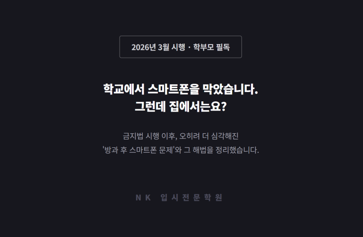 학교 수업 중 스마트폰 금지법 시행 : 우리 아이 집에서는 어떻게 관리해야 할까안산 <NK 입시전문학원 교육 정보 리포트>