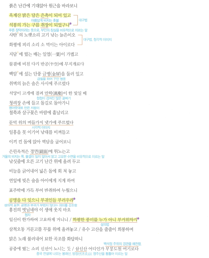2027학년도 수특 문학 고전시가 10 유산가 / 백석정별곡 변형 문제