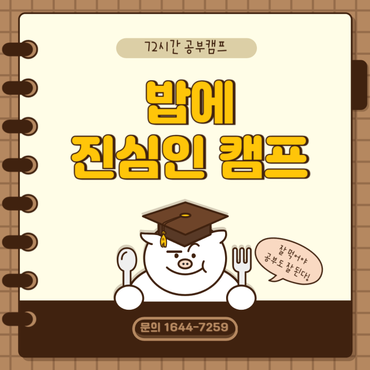 안녕하세요, 72시간 공부캠프입니다. 시간이 쏜살같이 흘러 33기 윈터스쿨도 얼마 남지 않았습니다. 72시간 공부캠프는 하루 12시간 이상 자기주도학습을 해야 하며, 미리 학습 플래너를 작성해 이를 실천할 수 있도록 멘토의 꼼꼼한 관리감독이 진행됩니다. 그만큼 3주 동안 쉽지 않은 일정을 보내는 학생들에게는 '밥'만큼 또 기다려지는 시간이 있을까 싶습니다. 72시간 공부캠프는 '밥'에 진심입니다. 밥이 맛있고 건강하지 않으면 공부하는 데 힘이 나지 않습니다. 72시간 공부캠프는 삼시세끼 야채와 고기, 과일 등 균형 잡힌 식단과 더불어 공부하다 지친 아이들이 힘을 낼 수 있도록 치킨, 피자, 중식, 분식 등 다양....... <img src="https://blogthumb.pstatic.net/MjAyNjAyMjRfMjQw/MDAxNzcxODk0MjQ4NzQz.4ZI6j4VSCzkn-u2E1405OsSsGeZ6dAEBwoISVD5lXa8g.MXW18byN7avvI-fJCLxcPSGYibrjNks-2E-7NSnlu9gg.PNG/%C1%A6%B8%F1%C0%BB_%C0%D4%B7%C2%C7%D8%C1%D6%BC%BC%BF%E4_-001.png?type=s3" />