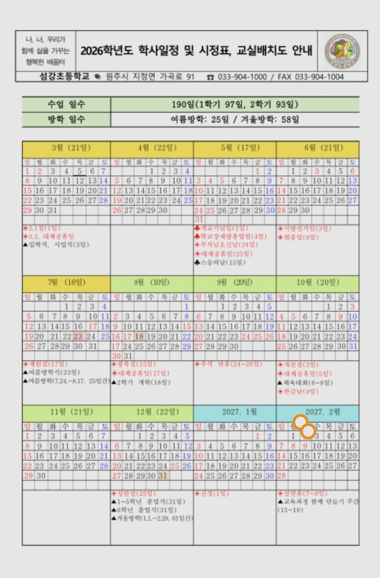 2026 섬강초 학사일정