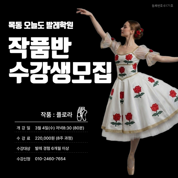 안녕하세요, 목동 오늘도 발레학원입니다. 다가오는 봄을 맞아, 싱그러운 봄의 기운을 가득 담은 새로운 작품반을 개강합니다. 이번 작품은 <플로라의 잠(The Awakening of Flora)> 중 '플로라(Flora)' 바리에이션입니다. 작품 소개: 플로라(Flora) '플로라'는 로마 신화에 등장하는 꽃과 봄의 여신입니다. 이 작품은 겨울잠에서 깨어난 플로라가 세상에 봄을 알리며 추는 춤으로, 우아하면서도 사랑스러운 동작들이 특징입니다. 마치 꽃잎이 흩날리는 듯한 가볍고 아름다운 표현력을 기르기에 더없이 좋은 작품입니다. 특히, 얼마 전 스위스에서 열린 2026 프리 드 로잔(Prix de Lausanne) 콩쿨에서 우리나라의....... <img src="https://blogthumb.pstatic.net/MjAyNjAyMjRfMjYg/MDAxNzcxOTA2OTg0Nzk1.ziR4Bh2vUDJH0I1ukbdg04MV-g2cfn5xXbTa_aALqvgg.Ah_aVnQIat8K6T6vWHgxClm4KqYuU7lGgqXFcZZnZLIg.PNG/%C7%C3%B7%CE%B6%F3.png?type=s3" />