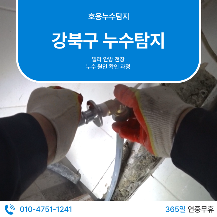 안녕하세요. 강북구 누수탐지 전문업체 호용누수탐지입니다. 빌라에서는 윗집 배관이나 화장실에서 발생한 누수가 아랫집 천장으로 이동하는 경우가 매우 많습니다. 이번 현장 역시 강북구에 위치한 빌라에서 아랫집 안방 천장에서 물이 떨어지는 문제가 발생해 강북구 누수탐지 빌라 점검 요청을 받고 방문하게 되었습니다. 아랫집 안방 천장에서 시작된 누수 확인 현장에 도착해 먼저 아랫집 안방의 누수 상태를 확인했습니다. 천장 마감재가 일부 젖어 있었고 변색된 흔적이 점점 넓어지는 상황이었습니다. 이런 형태의 흔적은 일정 시간 동안 수분이 계속 스며들 때 나타나는 경우가 많습니다. 현장에서는 먼저 피해가 발생한 안방 천장을 중....... <img src="https://blogthumb.pstatic.net/MjAyNjAzMTJfMTM4/MDAxNzczMjkxOTI3ODUy.EmOZFd8RyCIRhZSA5WYqqeNYvejsgacekfy-4CPSmiYg.dzTs0cDq0fdD6fHEsPFnLQl8CSEOLPFHT94KF4vhbiog.PNG/0.png?type=s3" />