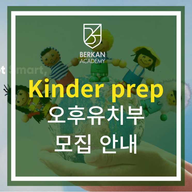 Kinder prep 오후 유치부 모집 안내 Kinder prep 오후 유치부 학생들을 모집합니다. 주 2회에서 5회까지 선택가능하며 매회 100분의 수업으로 진행됩니다. 레벨에 따라 Phonics 기초부터 미국 교과서 1학년 반까지 다양하게 개설되어 있습니다. 관심있는 학부모님들께서는 카톡채널로 등록 문의 주시기 바랍니다. 감사합니다. 아래 안내문을 확인하시고 자세한 문의는 카톡채널과 유선 또는 방문 상담 가능합니다. https://forms.gle/muQ5fphbs91vbkSR7 자세한 안내는 카톡채널을 이용해주시기 바랍니다. ☎02-3444-6106 www.berkanacademy.org www.instagram.com/berkan_academy <img src="https://blogthumb.pstatic.net/MjAyNjAyMTlfNCAg/MDAxNzcxNDcyODk5ODc1.o6iZuQ_dZ5jsZB2K1jZlYRfkbFl4lOADY2vu2Q3HEY4g.Oc85xXONK1U5kpl67UD5kiUSrNzd_ruo2JD6fZ4AvAAg.PNG/Blog_Thumb_nail_%2827%29.png?type=s3" />