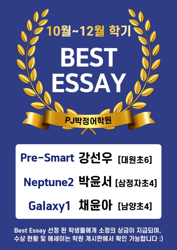 창원 PJ박정어학원 초등과정 :: 성적 우수자 & Best Essay(10-12월 학기)