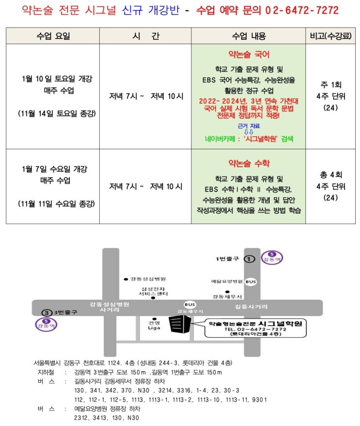 2026년 약논술 국어, 수학 시간표 [강동관]
