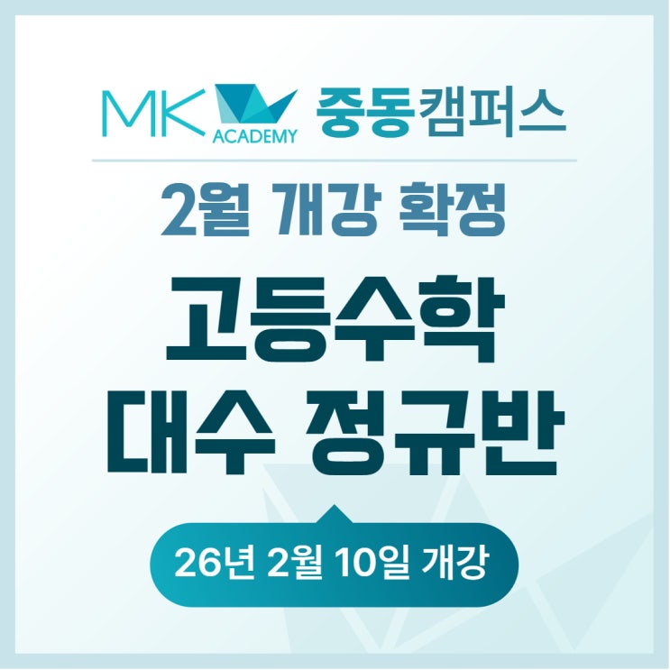 창원 중동 MK아카데미학원 2월 개강 확정 , 고등수학 대수 정규반 안내