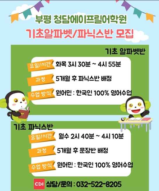 [부평십정동영어학원] 부평청담어학원 *부평에이프릴어학원 알파벳반 파닉스반 개강 안내