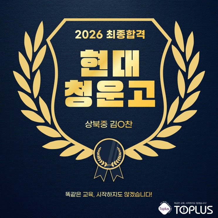 안녕하세요! 오늘은 토프러스에 좋은 소식이 있어서 공유하고자 합니다. 작년, 재작년의 울산외국어고등학교 합격 소식을 이어, 올해는 현대청운고등학교 합격 소식입니다. 토프러스어학원에서 또 한 명의 자랑스러운 합격생이 탄생했습니다. 2026학년도 ✨ 현대청운고등학교 최종 합격 ✨ 상북중 김○찬 학생, 진심으로 축하합니다! 현대청운고는 자기주도학습 역량, 내신 관리, 영어 실력, 면접 준비까지 모든 요소가 균형 있게 준비되어야 하는 학교입니다. 김 O 찬 학생은 초등학생 때부터 언양 토프러스어학원에서 공부한 학생입니다. 처음에는 영어에 대한 흥미를 키우는 것부터 시작했습니다. 읽는 습관을 만들고, 문장의 구조를 이해하고....... <img src="https://blogthumb.pstatic.net/MjAyNjAyMTJfMTU4/MDAxNzcwODc0ODAwMzA1.42QPoE5YIR6oxBVBLYQS2dGV25zzELiD9J3VsRYwcikg.8gqPfAm_7vvfVY6lYDZDP6fWMlYDl9tuMzt9fbrYoMUg.JPEG/%C7%F6%B4%EB%C3%BB%BF%EE%B0%ED.jpg?type=s3" />