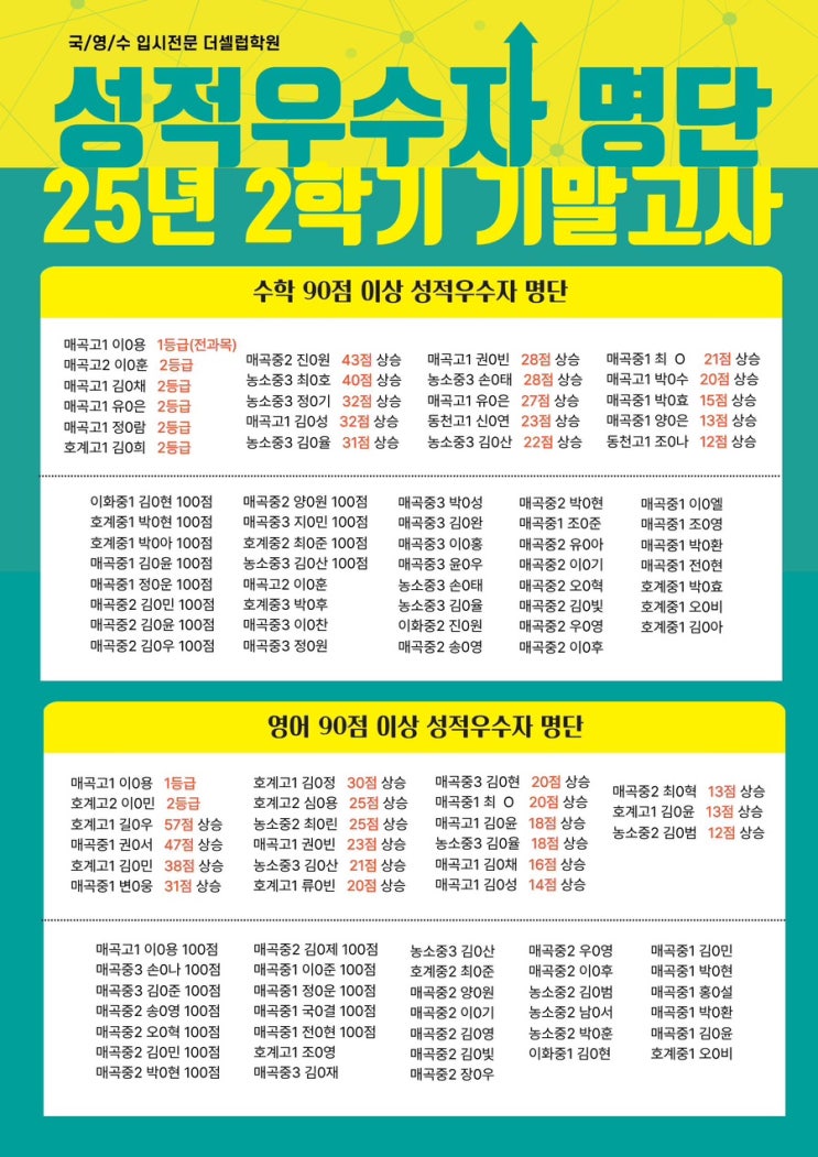 이번에도 역대급! 25년 2학기 기말 성적우수자! 울산 북구 매곡동 영어학원, 중산동 수학학원 더셀럽학원!