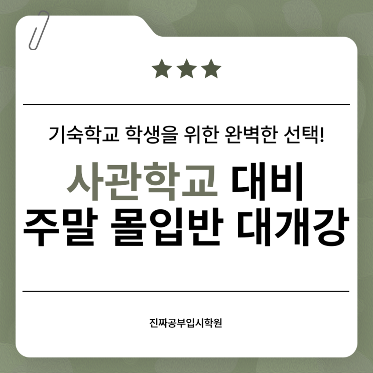 육군·해군·공군 사관학교 및 국군간호사관학교 진학을 꿈꾸는 수험생 여러분! 사관학교 합격을 위한 첫 번째 관문인 '1차 지필고사(국·영·수)'는 수능과는 출제 경향과 난이도가 차이가 많기 때문에 반드시 '사관학교 전용 맞춤 학습'이 필요합니다. 하지만 평일 내내 학교 일정에 매여있는 기숙학교 학생들은 학원에 다닐 시간이 부족해 막막함을 느끼는 경우가 많습니다. 이러한 수험생들의 갈증을 완벽하게 해소하고, 주말 단 3일 동안 사관학교 1차 시험의 모든 것을 끝내는 [일산 사관학원] 사관학교 대비 주말 몰입반이 개강합니다! '주말 몰입반', 이런 수험생에게 강력 추천합니다! 수능 준비와 사관....... <img src="https://blogthumb.pstatic.net/MjAyNjAyMjRfMTA4/MDAxNzcxOTE2NDIwNDE2.USvD8MlAuwjJ_5KFlTG2bdZ77U76X8z3VPj72oDikAYg.Z0VgE8NrVWbIKw1AU74YhuiOUrm5ewHwW8H-qnBZJQQg.PNG/001.png?type=s3" />