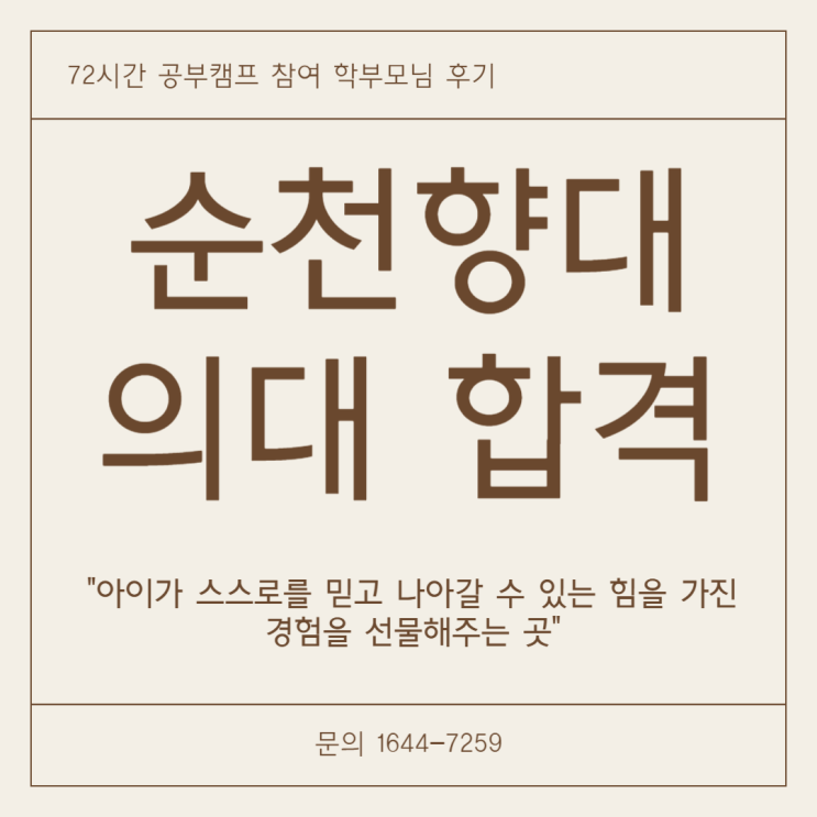 [72시간 공부캠프 참여 학부모님 후기] 캠프 덕분에 OO이가 원하던 대학에 합격하게 되었습니다 / 순천향대 의대 합격!