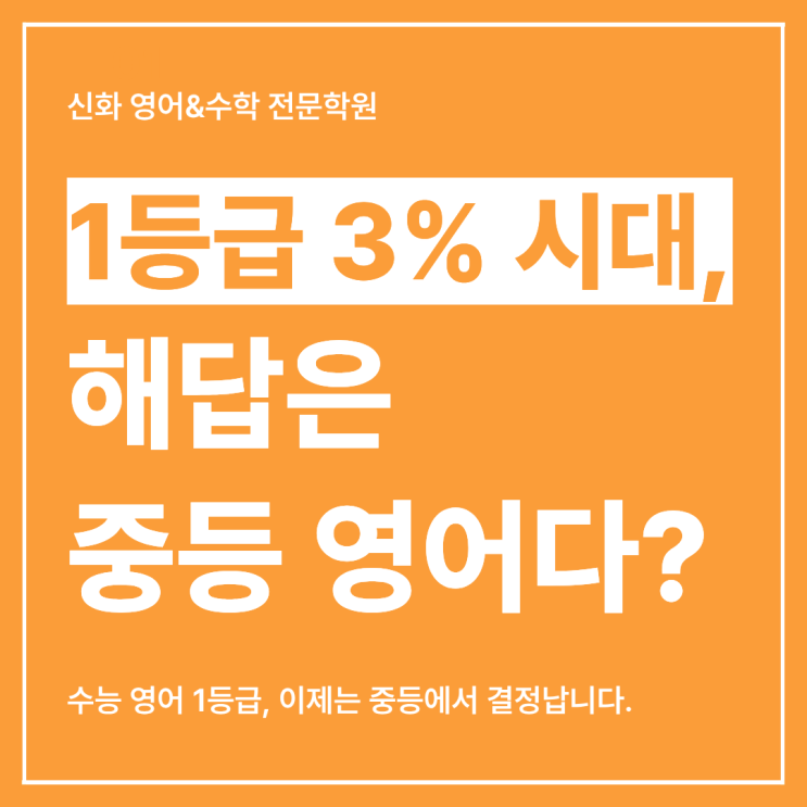 신내동 중등영어, 수능 영어 1등급 3.1% 시대, 이제는 '중등에서 승부'가 갈립니다. (신화 영수 전문학원)