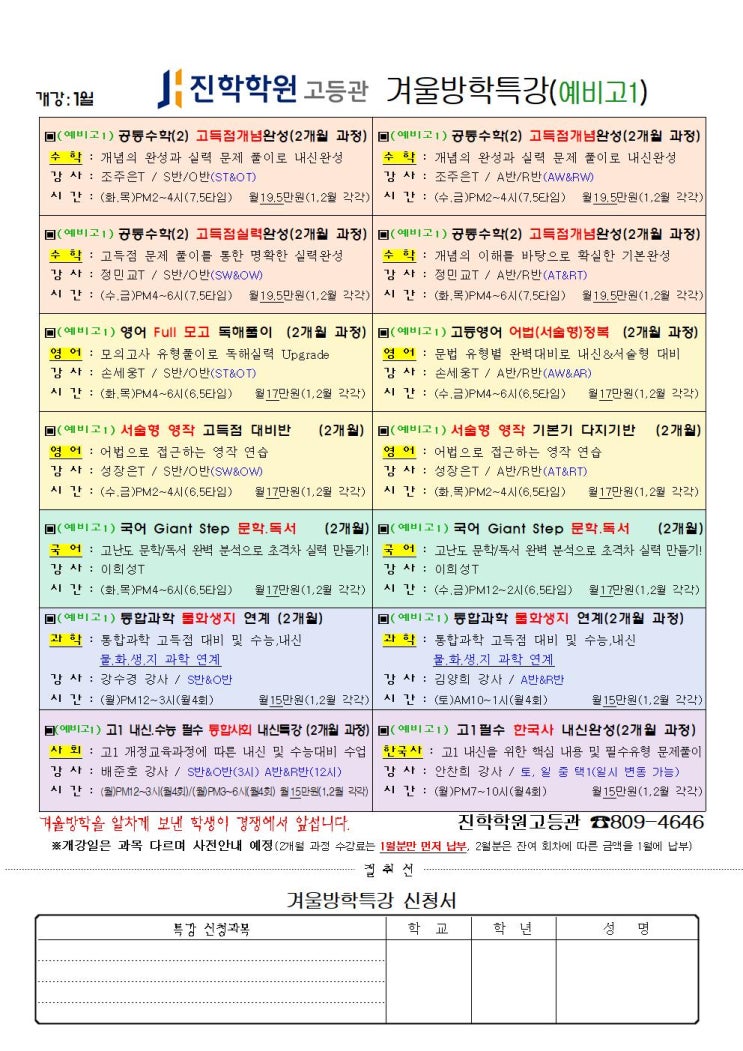 예비고1 겨울방학 특강 안내