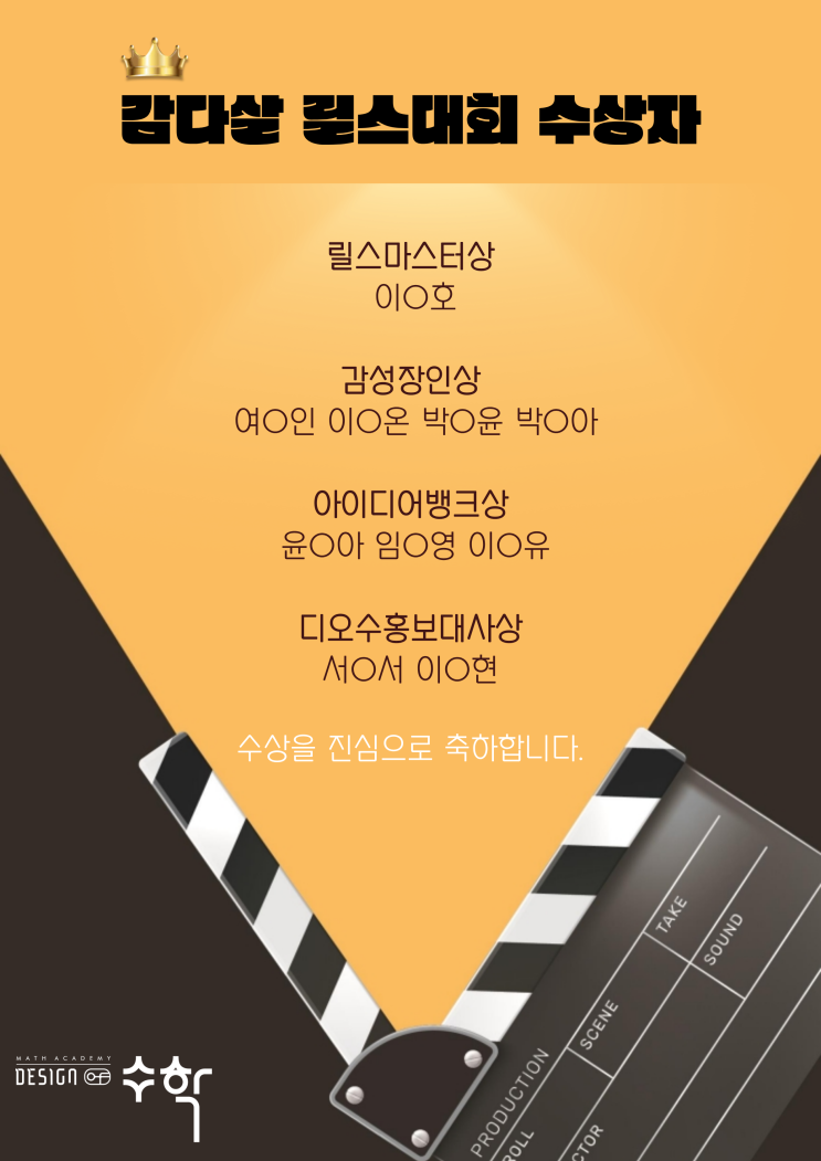 한솔초 수학학원 디자인오브수학 학생 릴스 콘테스트 시상 후기