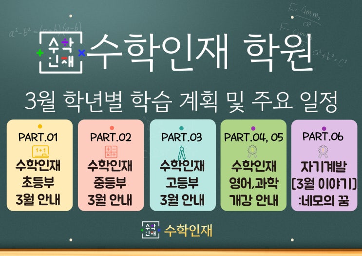 삼송수학인재 3월 학년별 학습 계획&주요 일정/수학인재 영어,과학 단과/1,2월 결산/3월이야기:네모의 꿈♪/고양중,지축중,원흥중,삼송초,동산초,창릉초,고양동산고 수학 전문