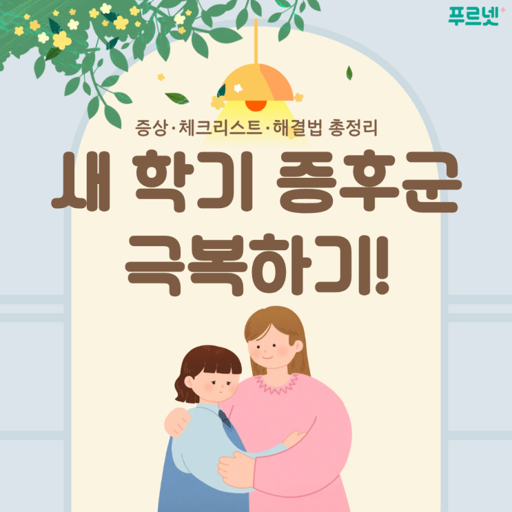 안녕하세요. 푸르넷입니다! 새 학기가 시작된 지 일주일이 지났는데요! 빠르게 적응하는 아이들도 있지만, 낯선 환경에 두려움을 느끼는 아이들도 있어요. 아침마다 아이가 아프다 하거나, 학교 가기 싫다고 우는 등 매일 정신없는 등교 시간을 보내고 있으신가요? 그렇다면, ‘새 학기 증후군’을 의심해 보아야 하는데요. 오늘은 ‘새 학기 증후군’이 무엇인지, 증상·자가진단 체크리스트·해결법 등에 대해 푸르넷이 자세히 알려드릴게요! 새 학기 증후군이란? 새 학기 증후군이란, 새 학기를 맞이하면서 아이들이 겪는 스트레스나 불안 증상을 뜻해요. 아이들은 낯선 환경을 마주해본 경험이 적기 때문에 이런 환경 변화에 큰 스트레스를....... <img src="https://blogthumb.pstatic.net/MjAyNjAzMTJfNTIg/MDAxNzczMjk0NDU3NTg3.y3nFoQzCv-CPmGNPM6Xc95YEgFj6W3Uv2nhLWt_IvW0g.djue7hH6DZDNLydQWhr4itj9TDvBVE-4ZzrfnfMtWb0g.PNG/%BA%ED%B7%CE%B1%D7_%BD%E6%B3%D7%C0%CF.png?type=s3" />