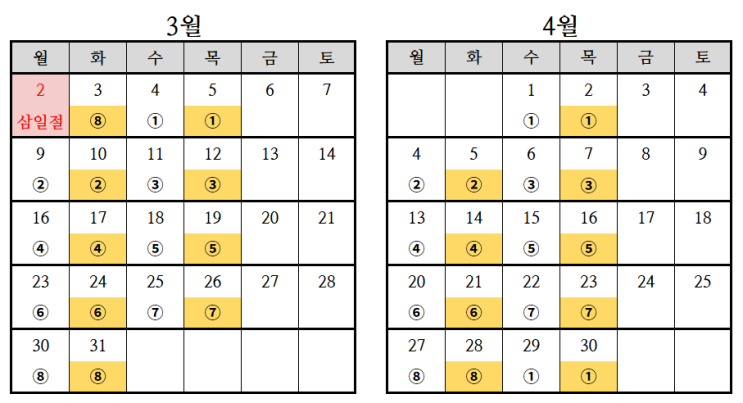 ➤ 중등 정규 수업 시작 겨울 방학 특강이 끝나고, 3월 3일(화)부터는 정규 수업이 시작되어 저녁 시간으로 수업 시간이 변경되오니 확인바랍니다. 월수반 / 화목반 모두 6시~9시까지 입니다. ➤ 초등 월간 평가 일정 : 3/11(수), 3/12(목) 대상 : 초등 재원생 전원 범위 : 현행 1학기 1, 2단원 *각 학년 1위와 100점 학생에게는 시상합니다. 시험을 통해 아이들의 실력을 다시 한번 점검하고, 부족한 부분을 보충해 실력을 향상도록 하겠습니다. *시험 결과는 분석표로 보내드리며, 추후 반배정의 평가 자료가 됩니다. ➤ 학원 3월 일정 안내 - 3/2일(월)은 법정휴일로 휴원합니다. - * 저희 학원은 학생이 질병으로 갑작스런 결석을 하게되는 경....... <img src="https://blogthumb.pstatic.net/MjAyNjAyMjRfMjAx/MDAxNzcxOTI2MzU1MTQy.p9WrqsbiBloL4YOZ6XQs1khMJxVtYDjQBcn1TyAVM7sg.WHVRPGtwvxpuZ3i1VAc19ruLKSJq2mC-X1cseBBwtPog.PNG/3.png?type=s3" />