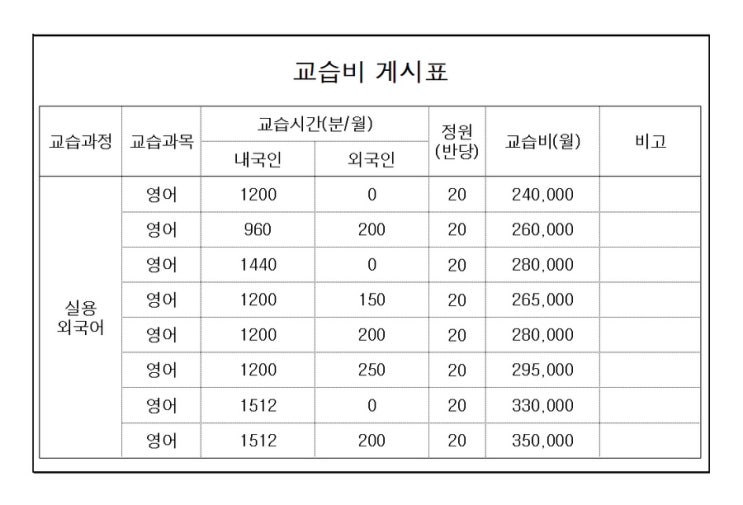 마스터클럽 수성어학원 교습비