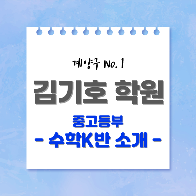 안녕하세요 계양구 NO.1 단과 입시전문 수학 영어 과학 국어 김기호학원입니다. 오늘은 김기호학원의 최상위권을 위한 중고등부 수학 K반에 대해 소개해드리려고 합니다~ 김기호학원 수학-K반은... ✔️ 테스트를 통해 실력과 가능성을 종합적으로 평가하여 선발된 학생들로 중·고등 선행과 심화학습을 원장 직강으로 진행하는 김기호학원의 대표 최상위반입니다. K반만의 특별함~ ✅ 원장 직강의 차별성! " 어려운 문제도 귀에 쏙쏙~ 풀이가 술술!! " 수년간의 입시 데이터와 상위권 지도 노하우를 가진 원장이 직접 수업하며, 학생 개개인의 취약점을 날카롭게 분석합니다. ✅ 빈틈없는 심화 학습 " 깊이 있고 탄....... <img src="https://blogthumb.pstatic.net/MjAyNjAxMzFfMjY1/MDAxNzY5ODQwMTY3ODI2.qGekvL01Vu3miUGwnMlNA1fwkwzVd8S0zFiMc_gGfCIg.AKyHguYUV30V3x0YktNapmSLnGzLcsemgHlxFgOERRgg.PNG/%BA%ED%B7%CE%B1%D7-%BD%E6%B3%D7%C0%CF-001.png?type=s3" />