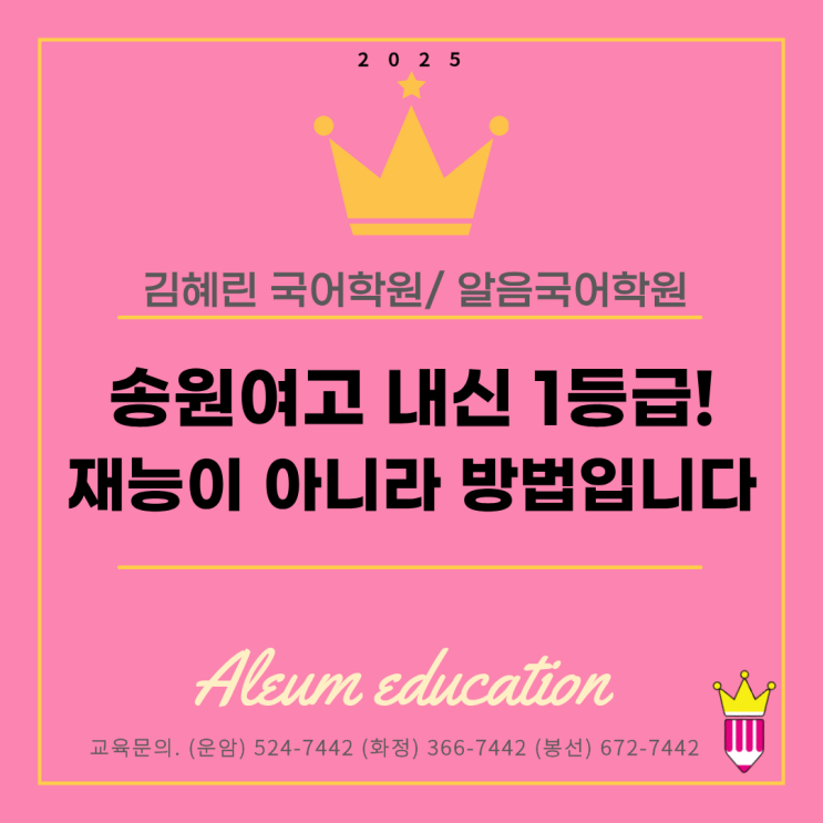 송원여고 국어학원 내신 1등급은 재능이 아니라 방법으로 이룬 것! 알음교육