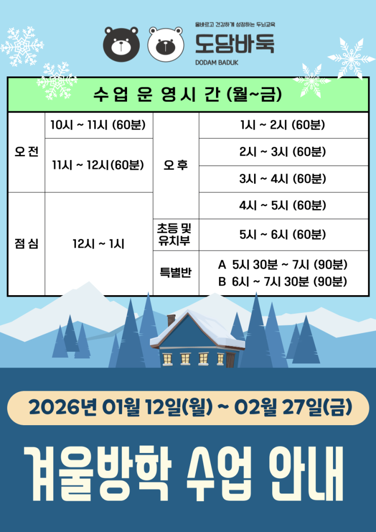 겨울방학 시간표 안내 및 방학 안내