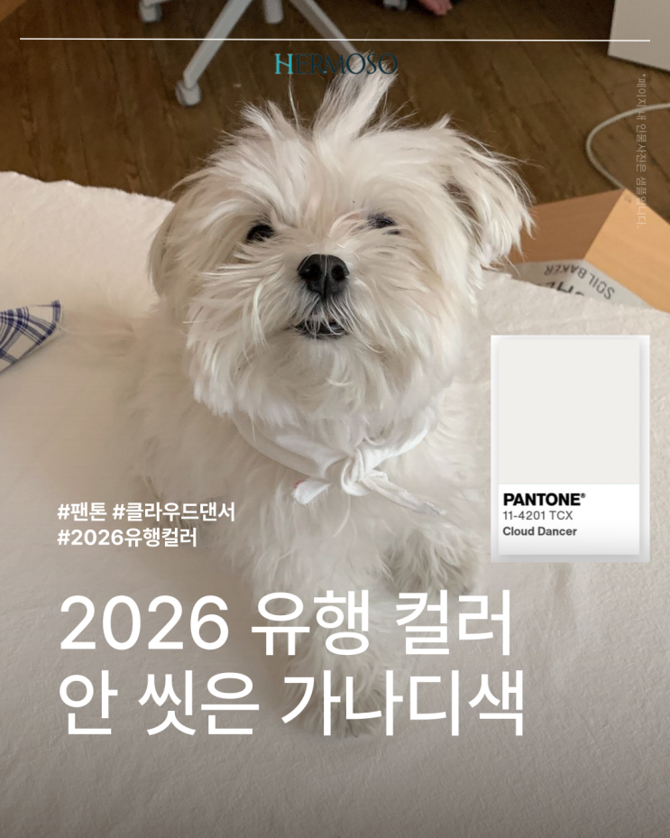 2026 팬톤 올해의 컬러가 드디어 공개되었는데요 ! 팬톤의 올해의 유행 컬러는 클라우드 댄서(Cloud Dancer)라고 합니다 ☁️ 처음 공개됐을 때부터 은은하고 부드러운 느낌이 인상적이었어요 ~ 전반적으로 포근한 색감이다 보니 “어디에나 잘 어울릴 것 같다”는 반응도 많았고, 안 씻은 강아지 색 같다는 귀여운 표현도 함께 나오더라고요 이 표현 덕분에 더 친근하게 느껴지는 컬러인 것 같아요 요즘 뷰티 트렌드가 자연스럽고 편안한 무드를 중요하게 보는 만큼, 클라우드 댄서는 네일이나 포인트 메이크업에 활용하기에도 부담 없이 잘 어울리는 컬러라는 생각이 들었습니다 !! 이런 컬러 트렌드는 단순히 보기만 하는 것보다 왜....... <img src="https://blogthumb.pstatic.net/MjAyNTEyMjNfMTI3/MDAxNzY2NDg1OTA1MDkz.MIf82CjFjyvX_uVSCisvbU6ApjGNcUqQrXaz3eFCTrgg.4mjzG6cfCwzYD0fjyLutTQQKErPK-CwF1do8WdxnUesg.PNG/001.png?type=s3" />