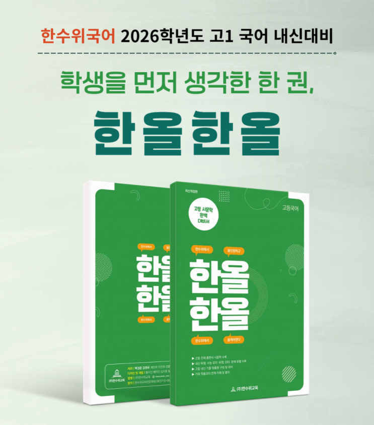 봉선동 한수위 국어 학원 2026학년도 고1 국어 내신대비 학생을 먼저 생각한 한 권, 한올한올