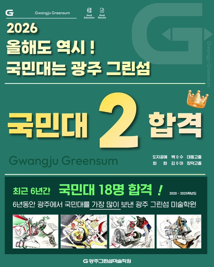 2026 광주그린섬미술학원 "국민대 2명 합격" 국민대학교는 역시 광주그린섬!