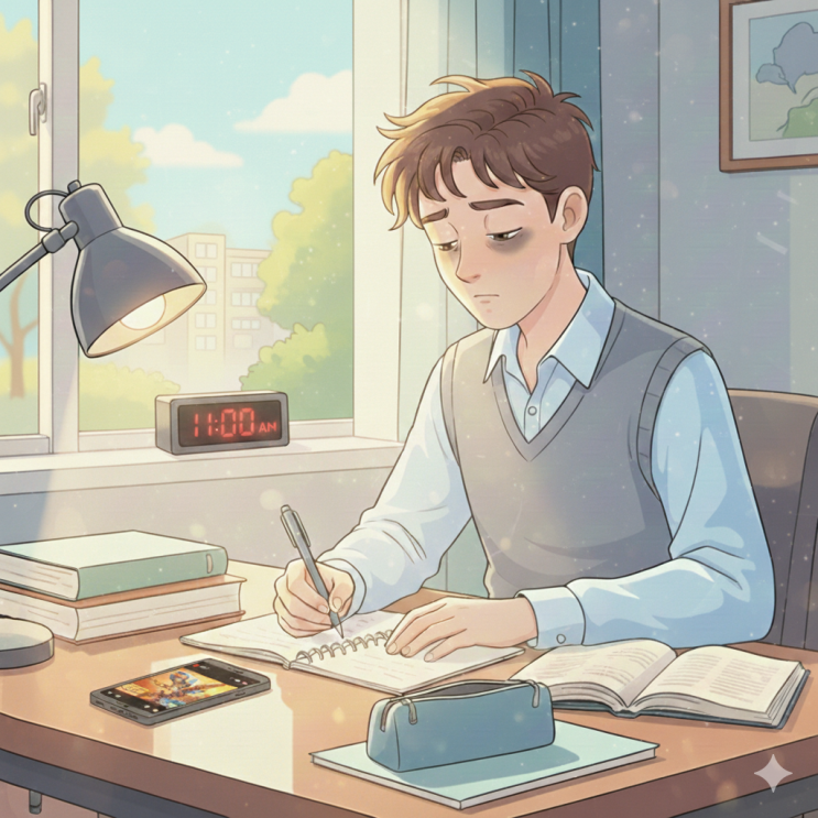 안녕하세요, 대동 이룸학원 수학 강사 선운입니다! 어느덧 2월의 첫날입니다. 기세 좋게 시작했던 겨울방학도 이제 딱 한 달 남짓 남았네요. 이맘때쯤 가정에서 가장 많이 들리는 한숨 소리가 있습니다. "우리 애가 낮밤이 바뀌었어요." "학원만 다녀오면 하루 종일 휴대폰만 붙잡고 있어요." 방학 중반을 넘어서며 아이들의 긴장감이 풀리고 생활 패턴이 무너지는 것은 어찌 보면 자연스러운 현상일지도 모릅니다. 하지만 수학 강사인 제 입장에서 2월의 무너진 밸런스는 단순히 '피곤함'의 문제가 아니라, '학기 중 성적'과 직결되는 아주 위험한 신호입니다. 1. 오전 시간의 실종, 뇌가 잠든 채로 수....... <img src="https://blogthumb.pstatic.net/MjAyNjAyMDFfMiAg/MDAxNzY5OTUwNzU2MDM1.2mpysz2lC3mmoDCuLrsGP7oQPUsyZ7tOdjbYE14Ktjkg.7vBU5atUdQCKqdNsfyHDRlVTSf4Ht9Z6T7Yb71g0x8cg.PNG/%C8%DE%B4%EB%C6%F9%C0%BB_%BA%B8%B8%E7_%C0%DA%BD%C0%C7%CF%B4%C2_%C7%D0%BB%FD.png?type=s3" />