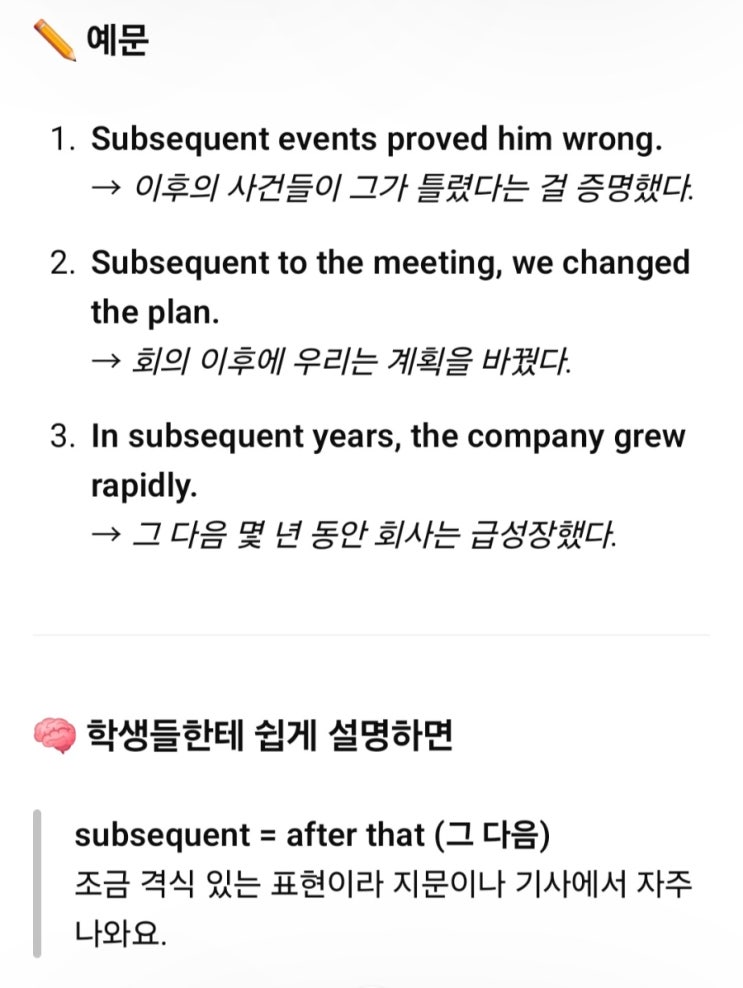(가오동 영어) subsequent