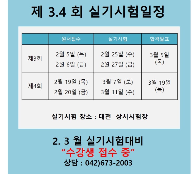 안녕하세요 ! 대전중장비학원 입니다. 얼마전에는 정기시험인 롤러운전기능사와 기중기운전기능사 자격증시험일정은 안내드렸는데요~ 이번에는 3.4회차 상시실기시험일정안내드립니다! 지게차운전기능사, 굴착기운전긴능사는 비교적 시험이 자주 있는편이지만 필기처럼 여러번 응시가능하지 않고, 지게차실기, 굴착기실기는 회차별 1번만 응시가능합니다 ~ 이번주 목요일 금요일 지게차실기. 굴착기실기 접수를 합니다. 지게차,굴착기가 다른 중장비에 비해 많이들 접하시고 보셔서 접근도 쉽게 하시는 편입니다. 그래서인지 쉽게 생각하고 오시는 경우가 많아요 ㅠ 영상으로 보면 어려워 보이지 않는 다고 느끼시는거 같아요 ㅠ 대한중장비운전....... <img src="https://blogthumb.pstatic.net/MjAyNjAyMDNfMjUx/MDAxNzcwMDkzMDI5Mzkx.zNpymmiRDVELT4RO6rIe4CP5WqGD-ZXd2qy-aD9ukU8g.8QO_LRtnwDw-2Ubm0-0yDotqzaxq1dXHnSy1kdxq4KIg.JPEG/3.4%BD%C7%B1%E2%BD%C3%C7%D4.jpg?type=s3" />