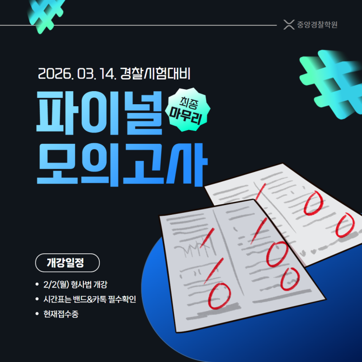 [대전경찰학원][대전중앙경찰학원] 26년 1차 경찰시험대비 마지막 파이널모의고사(2/2[월]개강)