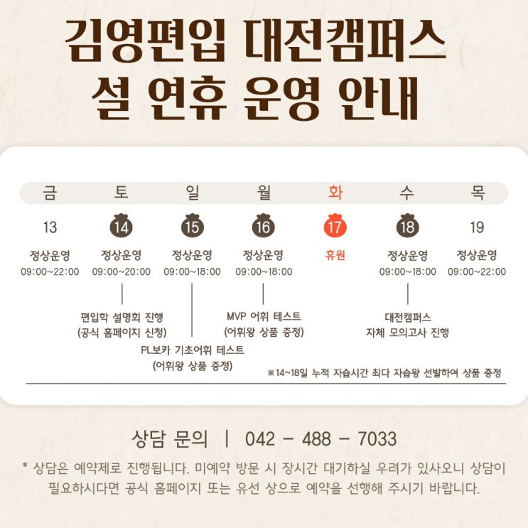[대전편입][김영편입] 설 연휴 대전캠퍼스 운영 안내 | 김영편입 대전캠퍼스