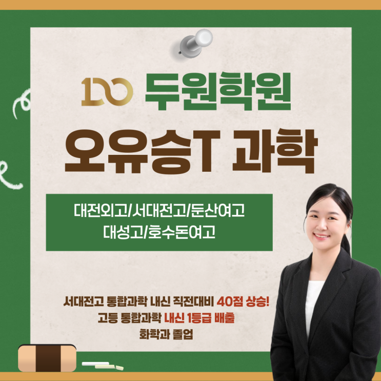 1학기 중간고사 완벽 대비!! 두원학원 오유승T 통합과학/화학 개강 안내 고등학교 첫 시험 중간고사 결과가 1학기 내신의 흐름을 결정합니다. 두원학원은 단순한 진도 수업이 아니라 <학교 시험에 맞춘><내신 시험 대비 수업>으로 진행됩니다. ✔ 학교별 시험 출제 유형 분석 ✔ 시험에 반드시 나오는 핵심 개념 정리 ✔ 내신 대비 문제 집중 훈련 ✔ 시험 직전 실전 대비 문제풀이 특히 통합과학과 화학은 개념 이해 + 문제 적용 능력이 함께 준비되어야 내신 등급을 올릴 수 있습니다. 서대전고 통합과학 내신 직전 대비 40점 상승 고등 통합과학 내신 1등급 배출 수업 대상 학교 대전외고 / 서대전고 / 둔산여고 /....... <img src="https://blogthumb.pstatic.net/MjAyNjAzMTNfMjc2/MDAxNzczMzg1NDAzMzMz.IEfL682kaFrgd_OlXLa4UsCNkB1kO77_XA70UJuivkAg.6bXMjWBR2cyWsR41Uvcz53ETKX_K_LdDAcHgzzkEzLYg.PNG/001.png?type=s3" />