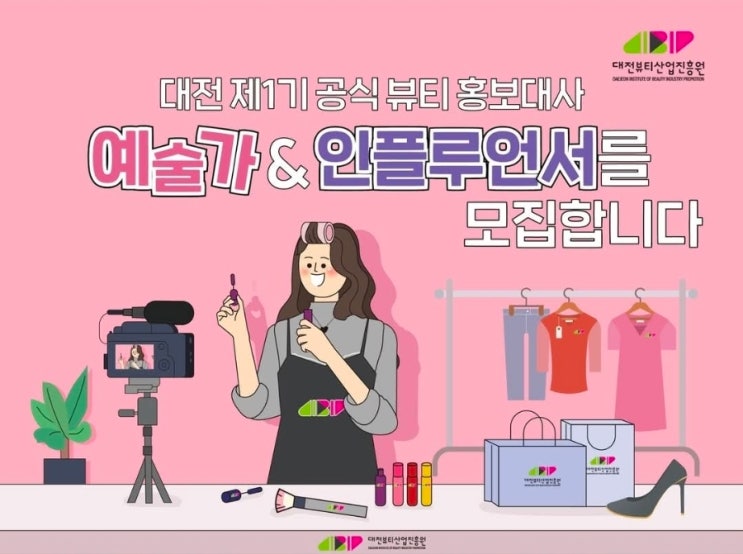 대전뷰티산업진흥원 공식 뷰티 홍보대사 제1기 모집 대전광역시 뷰티산업진흥원 공식 홍보대사 모집 전국 최초 뷰티전문기관으로 2026년 1월 설립 개원식을 가진 대전뷰티산업진흥원에서 제1기 뷰티 홍보대사 모집을 한다고 합니다. 와~~ 전국 최초 뷰티전문기관 홍보대사라는 그 영광스런 타이틀을 거머지는 영예의 주인공 은 과연 누가 될까요? 벌써부터 궁금해지네요^^ 이번 제1기 공식 뷰티 홍보대사는 예술가와 인플루언서를 대상으로 모집을 진행 하는데요. 포스터에 정확히 명시 되어있어요. 그런데 이번 홍보대사 모집 포스터 귀엽네요~ 일정과 내용을 조금 자세히 살펴보면 선발인원은 뷰티인플루언서와 뷰티소상공인. 뷰티아티스트 구....... <img src="https://blogthumb.pstatic.net/MjAyNjAyMTBfMjU1/MDAxNzcwNzI4MDQ4MTg0.a8jLksXNRB94uEIOLb71lGDKYa-aGD_lcyu-2PtoQVEg.vGid3Ix2UvjMzu3pv9ULKN2Gj63TdOkD12FPf58Chpog.JPEG/900%A3%DFScreenshot%A3%DF20260210%A3%DF175250%A3%DFFacebook.jpg?type=s3" />