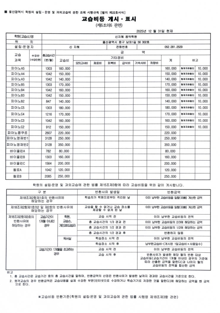 26년 교습비 게시