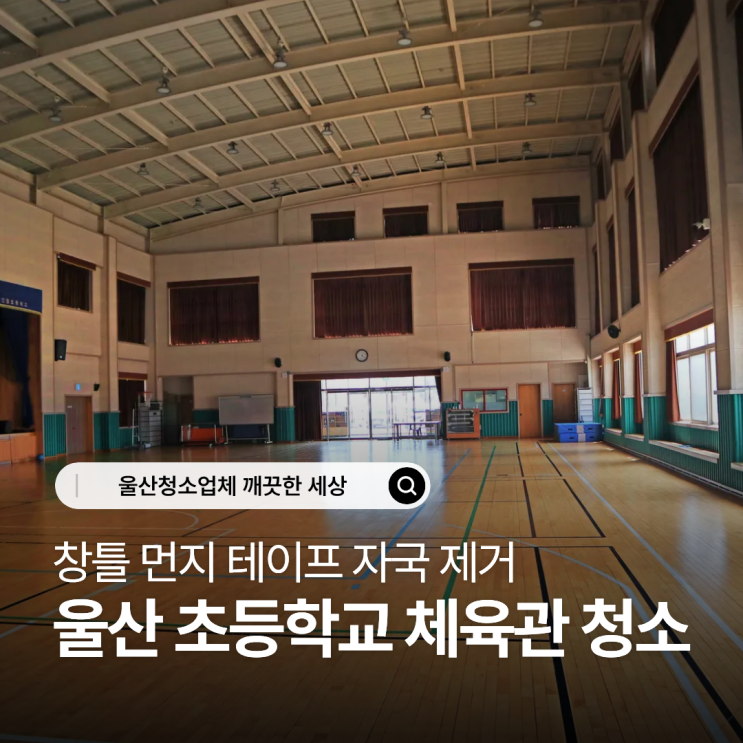 안녕하세요 울산청소업체 깨끗한 세상입니다. 목차 1.창틀과 상단 구조물 먼지 제거 2.조명 위 상부 먼지까지 꼼꼼하게 3.바닥 찌든 때와 테이프 자국 제거 4.집기실 청소 5.에어컨 청소로 쾌적하게 체육관은 체육 수업은 물론 각종 행사와 활동이 이루어지는 공간으로 사용량이 많은 만큼 먼지와 오염이 쉽게 쌓이는 곳이기도 합니다. 특히 초등학교 체육관은 활동량이 많은 아이들이 이용하는 공간이다 보니 위생과 안전을 위해 정기적인 관리가 필요한데요 이번 현장 역시 오랜 사용으로 인해 창틀과 바닥, 조명, 집기실 등 전반적인 관리가 필요한 상태였고 체육관 전체를 대상으로 꼼꼼하게 청소 작업을 진행하였습니다. 창틀과 상단 구....... <img src="https://blogthumb.pstatic.net/MjAyNjAyMDlfMjc2/MDAxNzcwNjAwNDQwNjM3.t612p1KkwyZLscNFvixpf-xxn26yYJy1d-ZyK2C5Upog.-FBokGe3dtyzIM7fbm5MHg7In6gCb25jUbe1w9yOEKYg.PNG/%BF%EF%BB%EA%26nbsp%3B%C3%CA%B5%EE%C7%D0%B1%B3%26nbsp%3B%C3%BC%C0%B0%B0%FC%26nbsp%3B%C3%BB%BC%D2_%C3%A2%C6%B2_%B8%D5%C1%F6_%C5%D7%C0%CC%C7%C1_%C0%DA%B1%B9_%C1%A6%B0%C5_%281%29.png?type=s3" />