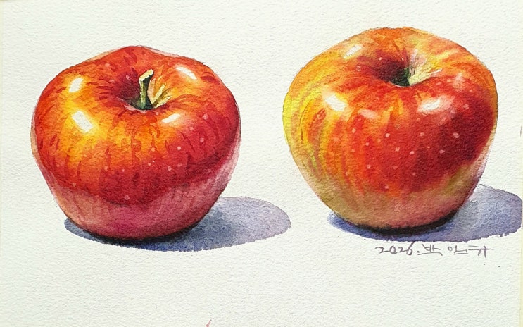 사과 그리기 수업작들,사과 수채화,울산미술학원