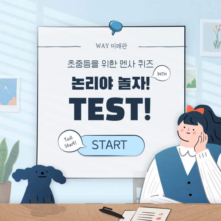 안녕하세요. WAY 학원입니다. 오늘은 초중등 학생을 위한 멘사 문제를 준비해 보았습니다. 다들 준비됐나요~?! 그럼 시작해 볼까요? 첫 번째 문제 네모에 들어갈 숫자는 무엇일까요? 첫 번째 문제 풀이 제일 오른쪽 숫자부터 먼저 나온 숫자를 2로 나눈 값에 다시 그 숫자를 더한 값이 다음 숫자입니다. 즉, 이므로 따라서 정답은 121.5입니다. 두 번째 문제 그림에서 다른 부분 11곳을 찾아보세요! 두 번째 문제 풀이 다른 부분 10개는 그림과 같고 11번째로 다른 점은 그림의 좌우가 바뀌어 있다는 점입니다. 세 번째 문제 각 도형이 나타내는 숫자를 유추하여 물음표에 들어갈 숫자를 찾아보세요! 세 번째 문제 풀이 그림을 유추하면 정답은 2....... <img src="https://blogthumb.pstatic.net/MjAyNjAyMDNfMTEz/MDAxNzcwMTA5NDIyMzQ5.LuONJR11FSLFn2MbzQsh6ROjKvI84KdtiYppDfRChScg.5ID8_2cAeC3JUSHH59YJZ3wdm5Fe8I6Wqbd4bA54fjgg.PNG/%B8%E0%BB%E734.png?type=s3" />