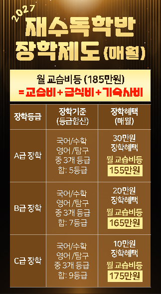 부산 종로H기숙학원 추천! 시설·학습관리 시스템 안내 (2027 재수정규반 선착순 모집)