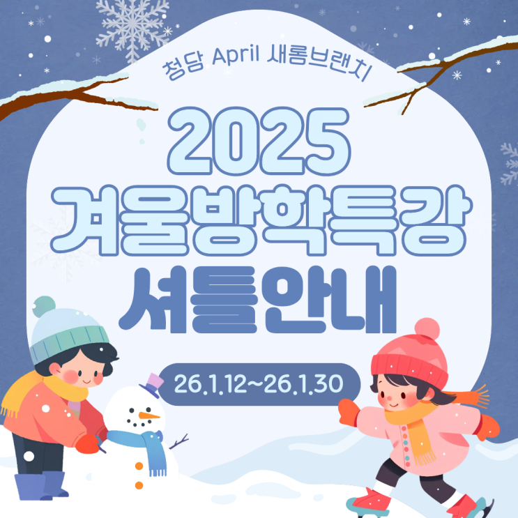 [청담April어학원 새롬브랜치] 2025 겨울방학특강 셔틀 시간표