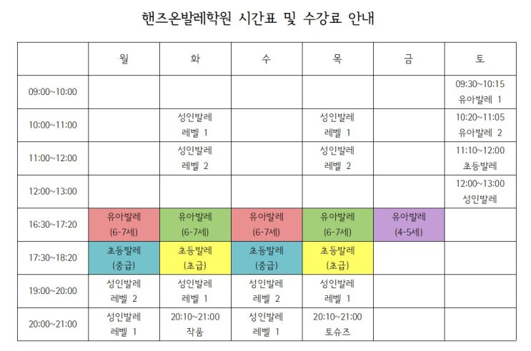 * 세종시 발레 * 나성동, 어진동 핸즈온발레학원 시간표