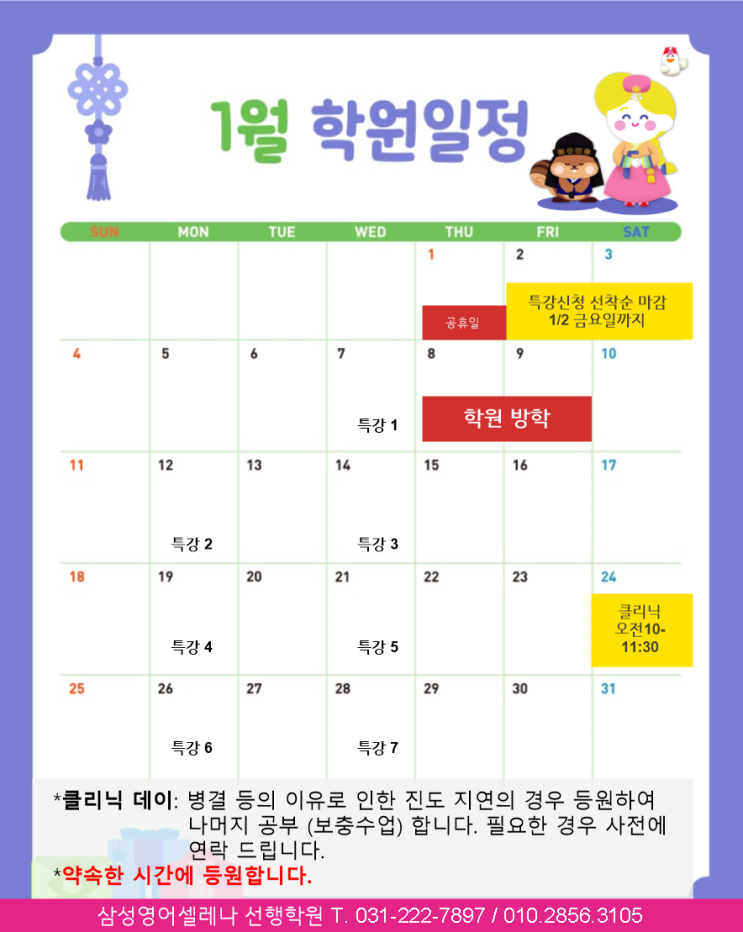 [셀레나선행학원] 1월 소식지/권선동 선행초 세곡초 영어/초중등영어전문 학원