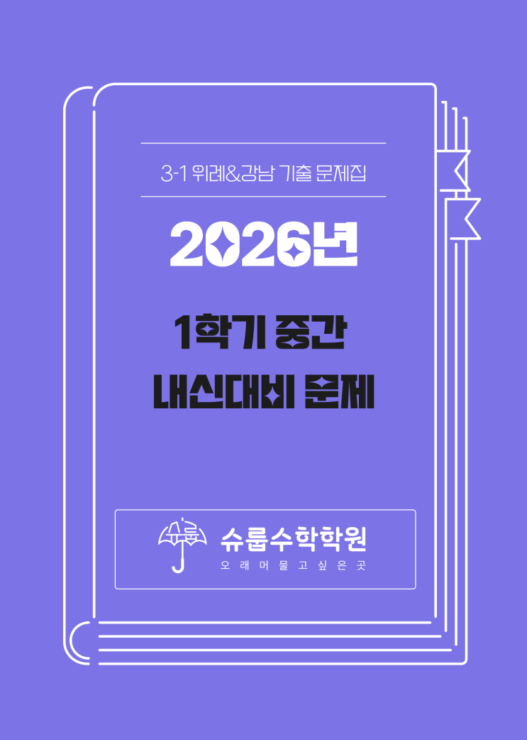 안녕하세요~ 어느덧 여기저기 벚꽃이 피어나 살랑살랑 마음도 흩날리는 계절 봄이 왔네요!! 학생들도 꽃구경도 가도 싶고 친구들과 밖에서 함께 어울리고 싶을 테지만 곧 다가올 중간고사를 준비해야 하는 시기이기도 합니다 ㅜㅜ 우리 학생들 모두 화이팅!! 슈룹수학 중등부에서는 4월 마지막주에 있을 중간고사 대비를 위해 3월 30일(월)부터 시험대비 수업이 시작되었습니다. 시험대비는 어떻게 이루어지는지 안내해 드립니다. 1)수업 시간 : 시험범위 단원들을 1단원부터 다시 개념 정리 하고 시험에는 잘 나오지만 학생들이 잘 놓치거나 많이 틀리는 부분들에 대해 다시 한 번 언급하고 정리합니다. 일품 or 쎈 C단계 & 기출유형문제에....... <img src="https://blogthumb.pstatic.net/MjAyNjA0MDJfMjI4/MDAxNzc1MTE0Nzg2MTY3.dh5-sRoKSz_tY4i0_Sxug7v9KjHh8WkM3XrtOZ8Hz80g.BA65cDdEn4B8Vx75Lk_o3KK-i6HfTEWHpLfHOrUpqWwg.PNG/26%B3%E2_%C1%DF%B0%A3%B4%EB%BA%F1_%B1%E2%C3%E2%B1%B3%C0%E7_%283%C7%D0%B3%E2_-%BE%D5%29.png?type=s3" />
