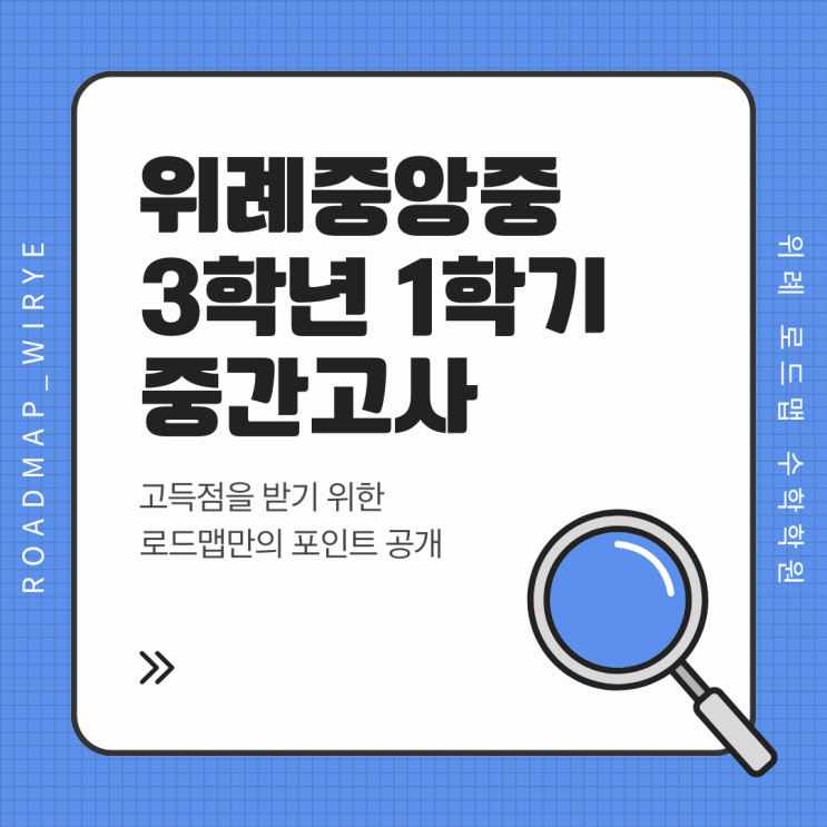 안녕하세요. 위례 로드맵 수학학원입니다 위례중앙중학교 3학년 학생들의 첫 지필평가 시험이 코앞으로 다가왔습니다. 이번 1학기 중간고사는 고등 수학의 기초가 되는 중요한 단원들이 포함되어 있어 더욱 철저한 준비가 필요합니다. 위례중앙중 중간고사 일정은 4월 23일 목요일 입니다. 위례중앙중학교 중간고사 수학 시험범위는 제곱근과 실수 부터 인수분해까지로 교과서와 배부된 학습지까지입니다. 위례중앙중학교 수학 시험은 교과서 중심의 기본 원리를 정확히 파악하고 있다면 충분히 고득점이 가능합니다. 어려운 심화 문제에 매몰되기보다 실수 없이 기본기를 다지는 것이 이번 시험의 핵심 승부처입니다. 3학년 1학기 중간고사에서....... <img src="https://blogthumb.pstatic.net/MjAyNjA0MDNfMTE2/MDAxNzc1MTkzMjk3MjE1.1SW1kkHBi8DiFB0EpklyyLtbvgABO0YQHQX2MVJBb78g.oCm7Jrjqr-u91bxvyM5xk5P6p1nkMnSLQKjGj4Z3pHgg.PNG/%C6%C4%B6%F5%BB%F6%B0%FA_%C8%F2%BB%F6_%BD%C9%C7%C3%C7%D1_%BA%ED%B7%CE%B1%D7_%BD%E6%B3%D7%C0%CF_%C5%B8%C0%CC%C6%B2_%C0%CC%B9%CC%C1%F6_%C7%A5%C1%F6_%C0%CE%BD%BA%C5%B8%B1%D7%B7%A5_%B0%D4%BD%C3%B9%B0.png?type=s3" />