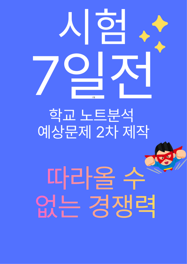 고등부 중간고사 시험대비반 개강 안내 안녕하세요. 고등부 중간고사 시험대비반이 3월 23일 개강합니다. 이번 시험대비 기간에는 국어 · 영어 · 수학 · 과학 내신 집중 대비로 학교별 시험 범위에 맞춘 개념 정리 + 문제풀이 + 시험 대비 관리가 진행됩니다. 시험대비 등록 특전 안내 ✔ 2과목 등록 시 → 사회 · 한국사 관리 프로그램 무료 제공 ✔ 3과목 등록 시 → 학생부(생기부) 디자인 및 관리 무료 제공 시험기간은 짧지만 준비에 따라 결과는 크게 달라집니다. 이번 중간고사에서 학생들이 좋은 결과를 얻을 수 있도록 체계적으로 관리하겠습니다. 대상 : 고등부 개강 : 3월 23일 상담 및 문의는 언제든지 연락 주세요. ....... <img src="https://blogthumb.pstatic.net/MjAyNjAzMjFfMTYy/MDAxNzc0MDc0MzU3NzMw.1i1MqcIkJsLJEhPAAkcFJ6dac8K7-vXsYlh1QxLHvTkg.yVdR4j70GBMyDx7GyRdRjdAhAwvHcdEYad5DtYyRAswg.PNG/image.png?type=s3" />